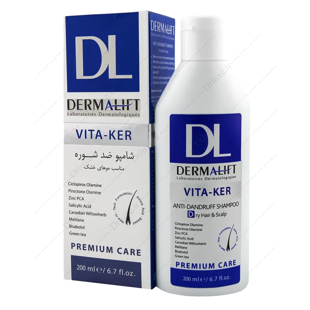 درمالیفت شامپو ضد شوره فری سولفات موهای خشک ویتاکر