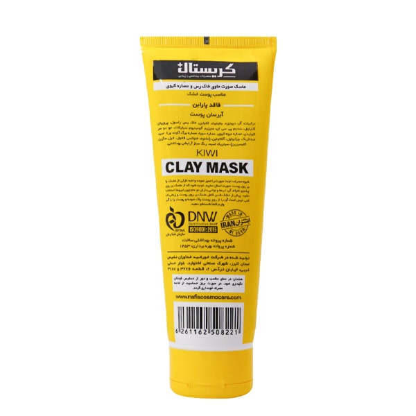 یکی از ترکیبات اصلی ماسک آبرسان صورت کریستال، کیوی است، که خواص شگفت انگیزی برای پوست دارد. این میوه خاصیت آنتی اکسیدانی داشته و اثرات مخرب رادیکالهای آزاد بر پوست را از بین میبرد. کیوی به ترمیم سلولهای آسیبدیده پوست میپردازد، خاصیت ارتجاعی پوست را افزایش می۲دهد و از آن در برابر اشعههای مضر خورشید محافظت میکند. این میوه تیرگیهای زیر چشم را محو کرده و از بروز بیماریهای پوستی در افراد جلوگیری میکند.